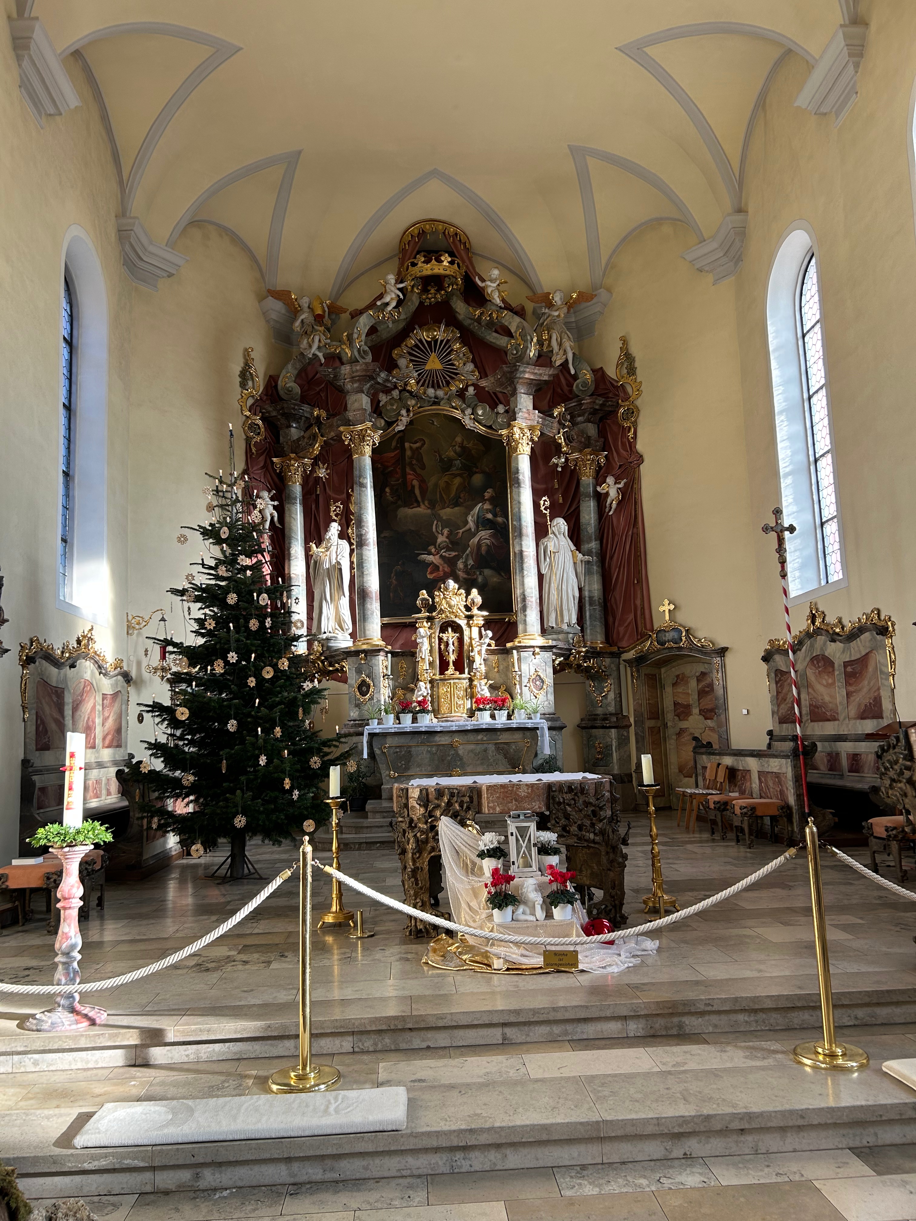 In a prior post, I described the Catholic graveyard in Schweighausen. It is connected to St. Romanus Church. In 1132, a chapel was consecrated in Schweighausen to honor St. Romanus. The current building was erected in 1777. After a fire in 2006, it was renovated into the church we see today.