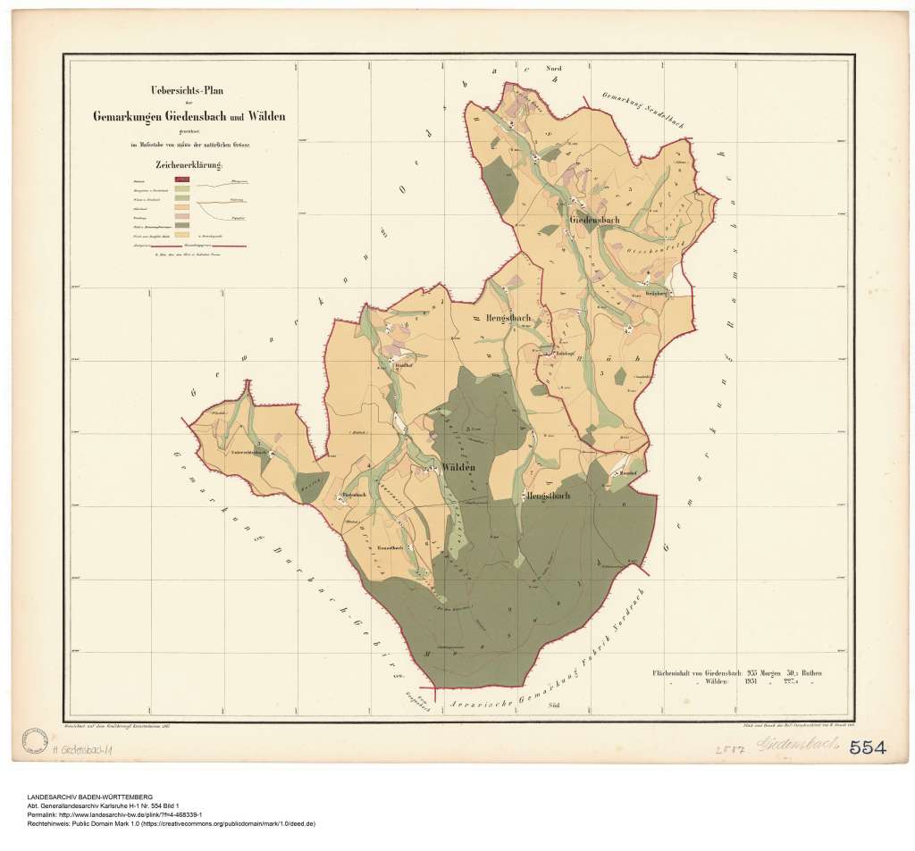 The Landesarchiv [State Archive] Baden-Württemberg website has a beautiful collection of 1:10000 maps in color. I looked at the one for Ödsbach and it did not show Wälden. I noticed that Giedensbach was on the border of Ödsbach, so I pulled up that map. And there in the middle of the map was Wälden. Just north of it was Gnadhof, which was another area I had seen associated with the Hubers. I’ll talk more about that in a later post.