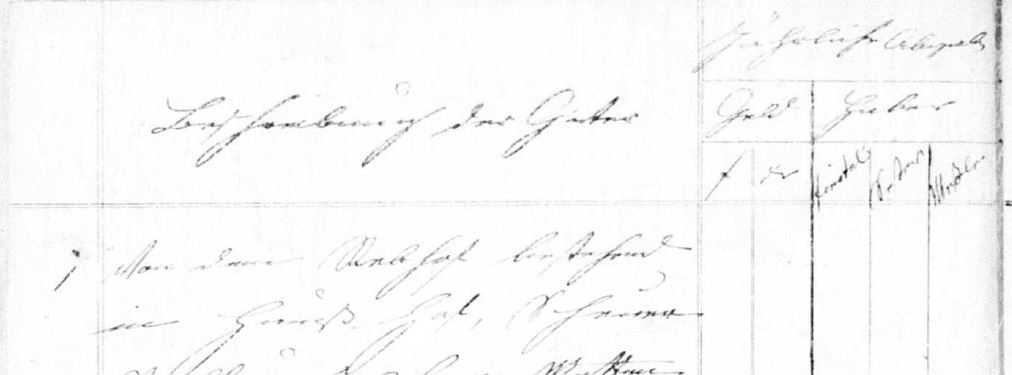 This example is from 1825 for Butschbach.[1] Each page describes a Gut [farm] and its annual taxes. The taxes fall into two categories: money and grain. The currency for Baden at the time were Florin, subdivided into Kreuzer. The measurement for grains, from largest to smallest, were Fiertel, Sester, and Meßlein. Every region had its own units of measure. Sometimes they had the same or similar names, but they might equate to different amounts. One of the archivists alerted us to a great book for weights and measures in Baden: Wolfgang and Hippel, Maß und Gewicht im Gebiet des Großherzogtums Baden um 1800 [Measurements and weight in the area of the Grandduchy of Baden around 1800] (Mannheim: Institut für Landeskunde und Regionalforschung der Universität Mannheim, 1996).