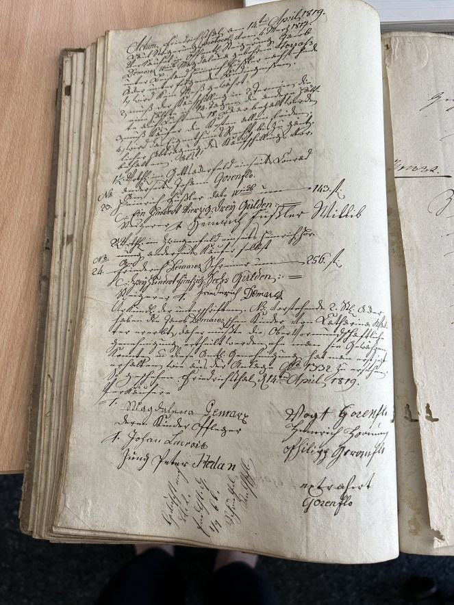 - No. 23: 1-1/2 viertel in Gottsackerfeld, on one side Conrad on the other Johann Gorenflo. The bidder was Heinrich Füßler on behalf of the widow – 143 florin